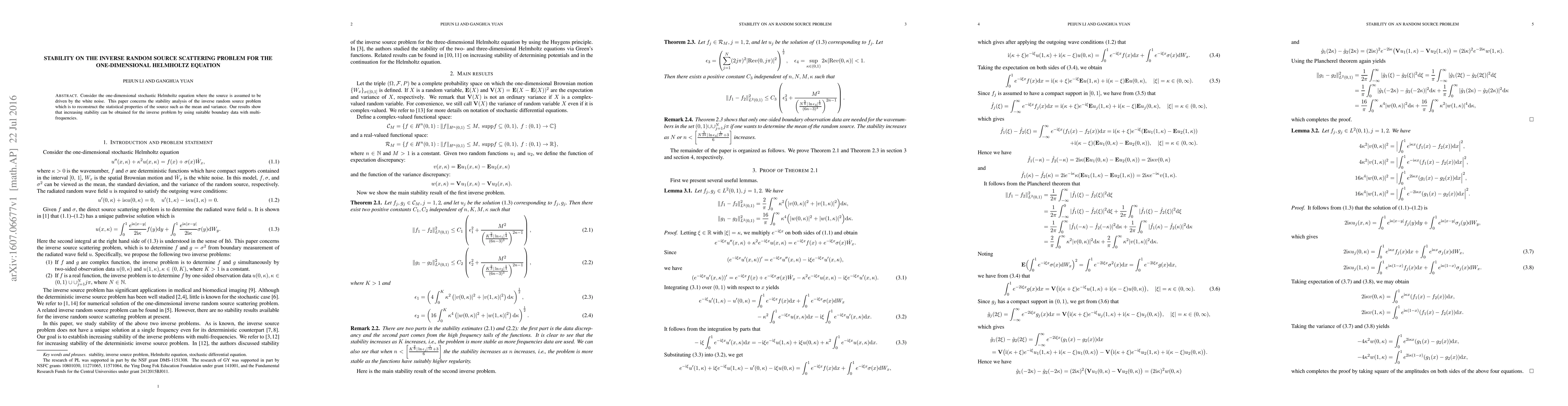 This paper investigates the stability of reconstructing the statistical properties of a stochastic source in the one-dimensional Helmholtz equation driven by white noise. It demonstrates that employing boundary data with multi-frequency components enhances the stability of the inverse random source scattering problem.