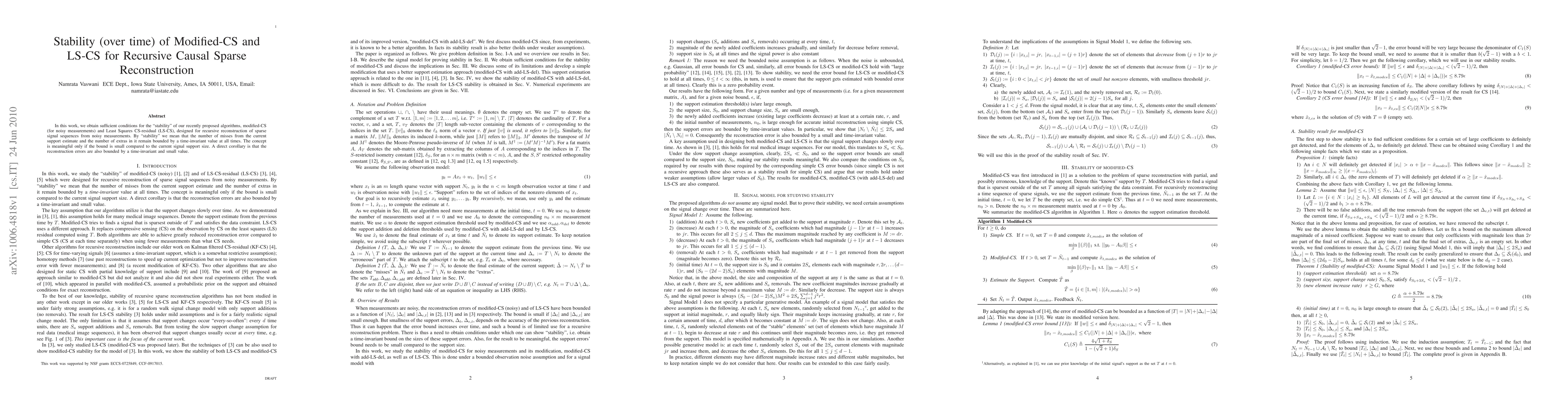 This paper establishes sufficient conditions for the stability of two algorithms, modified-CS and LS-CS, for recursively reconstructing sparse signal sequences from noisy measurements. Stability here means that the number of misses and extras in the support estimate remains bounded over time, ensuring small reconstruction errors.