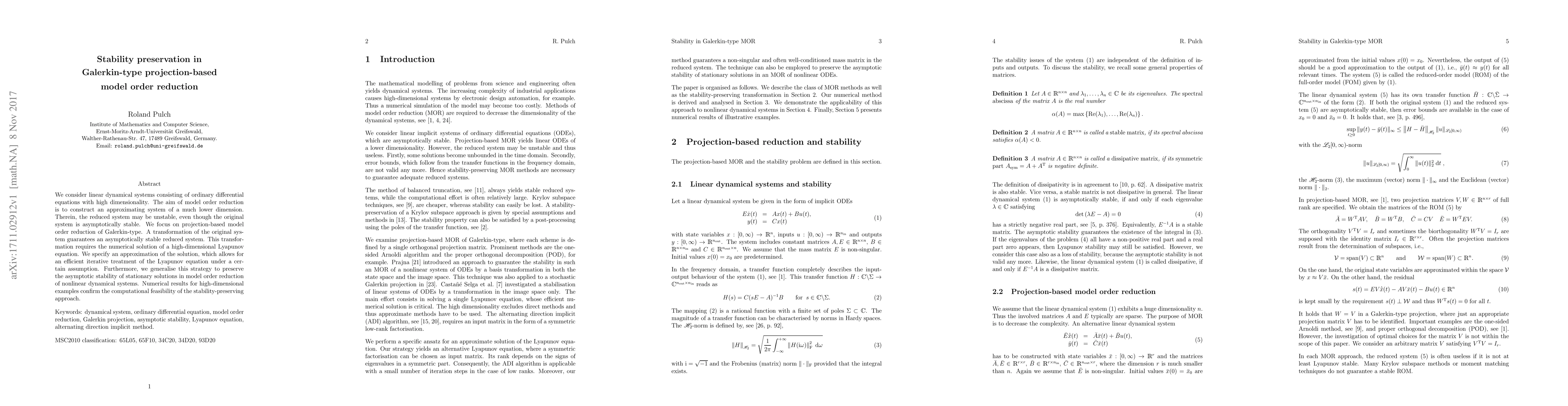 Researchers developed a method to preserve stability in model order reduction for high-dimensional linear dynamical systems, enabling the construction of stable approximating systems.