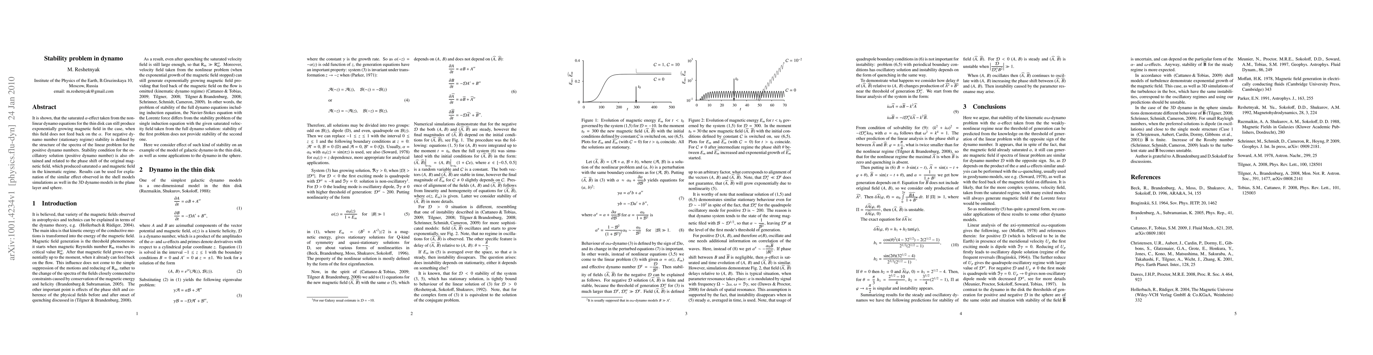 It is shown, that the saturated $\alpha$-effect taken from the nonlinear dynamo equations for the thin disk can still produce exponentially growing magnetic field in the case, when this field does not feed back on the $\alpha$. For negative dynamo number (stationary regime) stability is defined by the structure of the spectra of the linear problem for the positive dynamo numbers. Stability condition for the oscillatory solution (positive dynamo number) is also obtained and related to the phase shift of the original magnetic field, which produced saturated $\alpha$ and magnetic field in the kinematic regime. Results can be used for explanation of the similar effect observed in the shell models simulations as well in the 3D dynamo models in the plane layer and sphere.