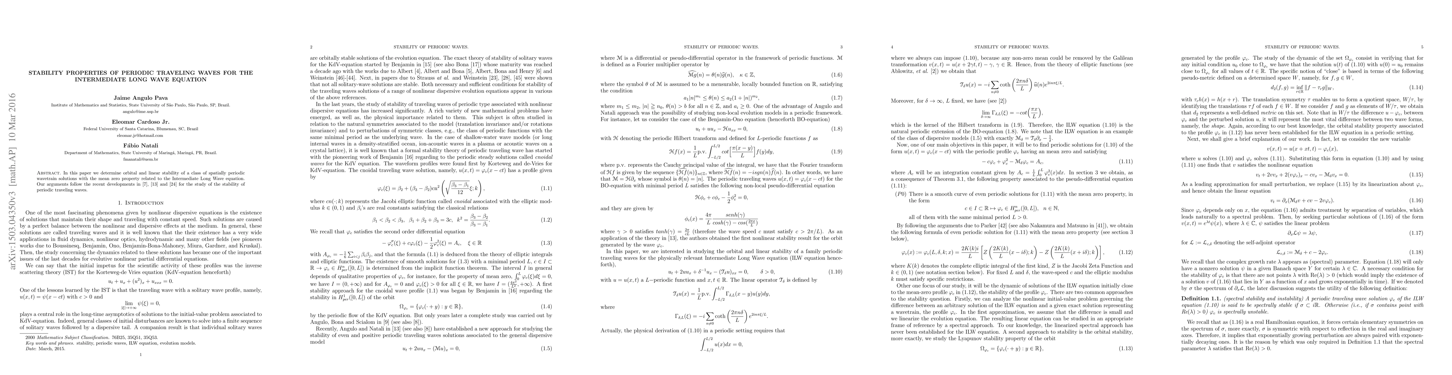 Summary: This paper investigates the orbital and linear stability of periodic traveling waves with mean zero for the Intermediate Long Wave Equation, utilizing recent methodologies from referenced studies to establish stability properties.