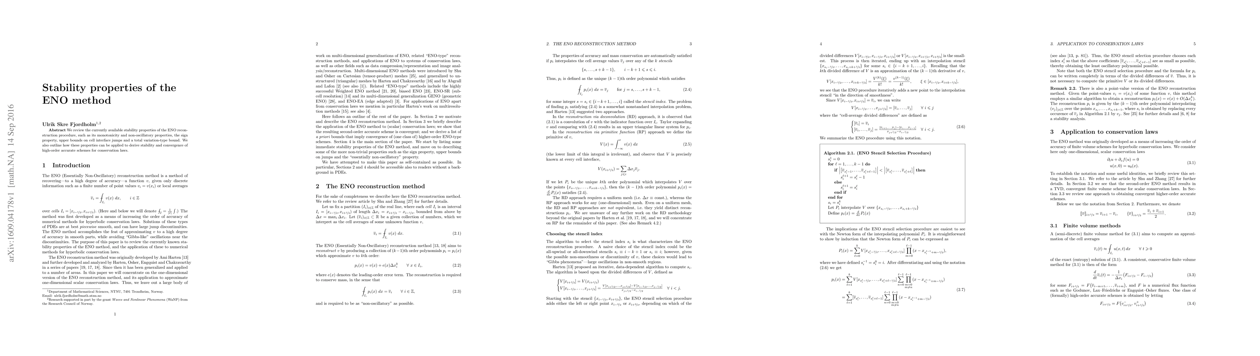 We review the currently available stability properties of the ENO reconstruction procedure, such as its monotonicity and non-oscillatory properties, the sign property, upper bounds on cell interface jumps and a total variation-type bound. We also outline how these properties can be applied to derive stability and convergence of high-order accurate schemes for conservation laws.