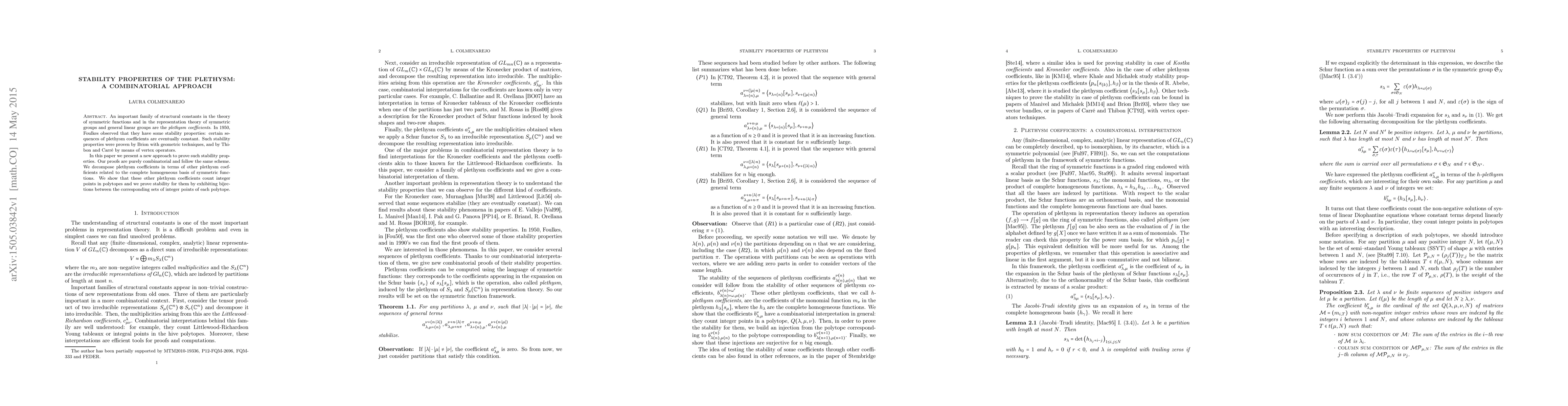 This paper introduces a combinatorial approach to demonstrate the stability properties of plethysm coefficients, which are crucial in symmetric functions and representation theory. The authors decompose these coefficients and prove their stability by establishing bijections between sets of integer points in associated polytopes.