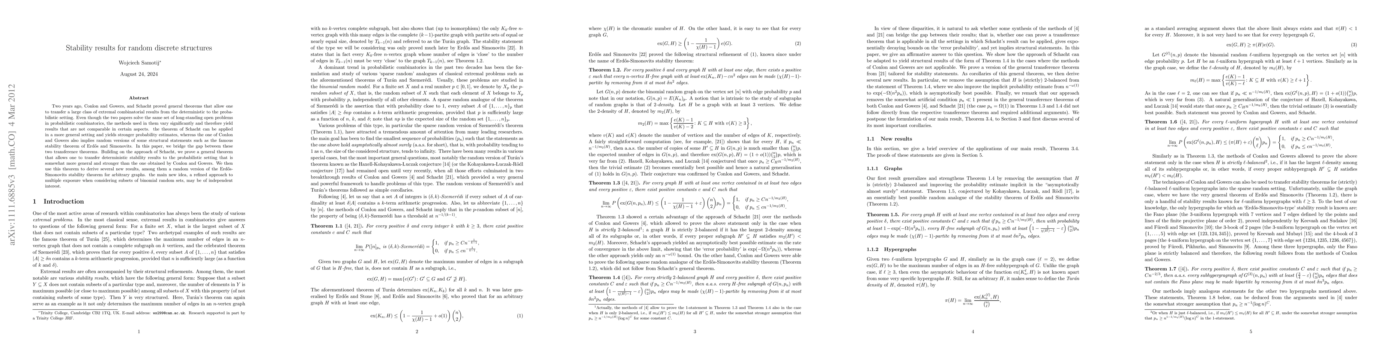 Researchers have developed a new theorem that allows them to transfer deterministic stability results to the probabilistic setting, enabling stronger probability estimates and deriving several new results, including a random version of the Erdos-Simonovits stability theorem for arbitrary graphs.