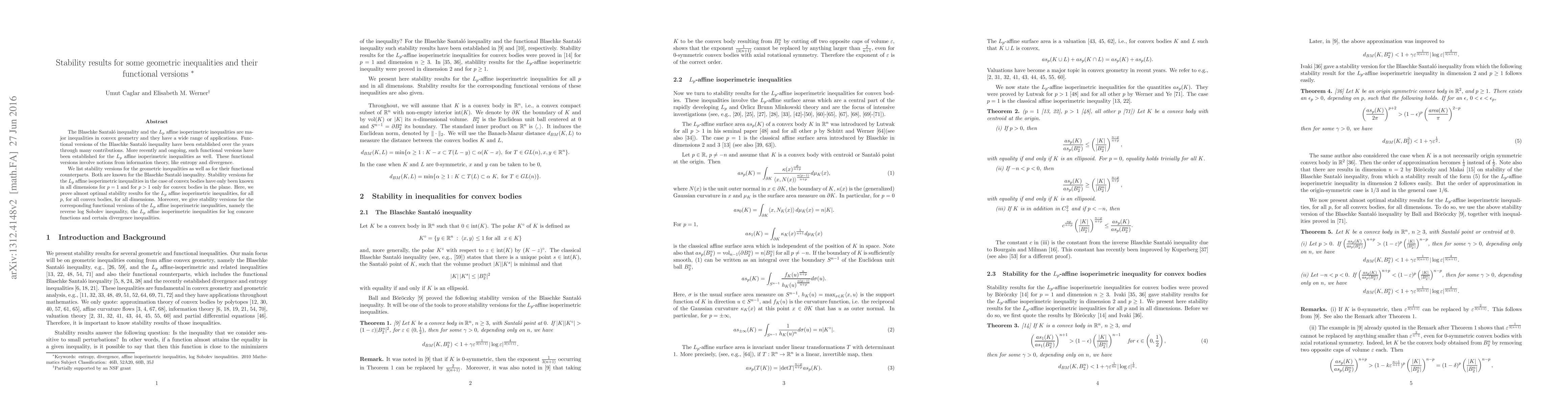 This paper establishes stability results for the Blaschke Santaló and $L_p$ affine isoperimetric inequalities in convex geometry, extending these results to functional versions involving entropy and divergence. It proves almost optimal stability for $L_p$ affine isoperimetric inequalities across all dimensions and convex bodies for any $p$.