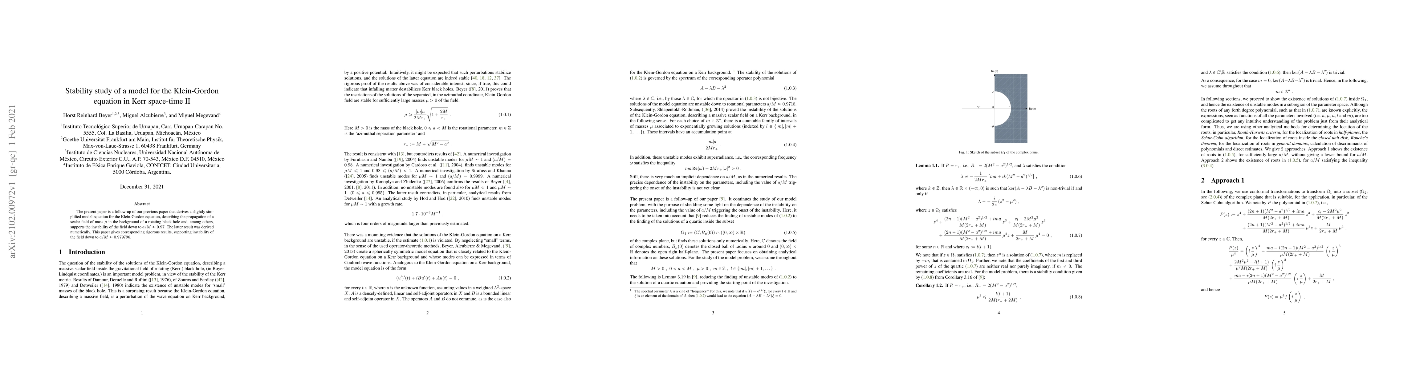 The present paper is a follow-up of our previous paper that derives a slightly simplified model equation for the Klein-Gordon equation, describing the propagation of a scalar field of mass $\mu$ in the background of a rotating black hole and, among others, supports the instability of the field down to $a/M \approx 0.97$. The latter result was derived numerically. This paper gives corresponding rigorous results, supporting instability of the field down to $a/M \approx 0.979796$.