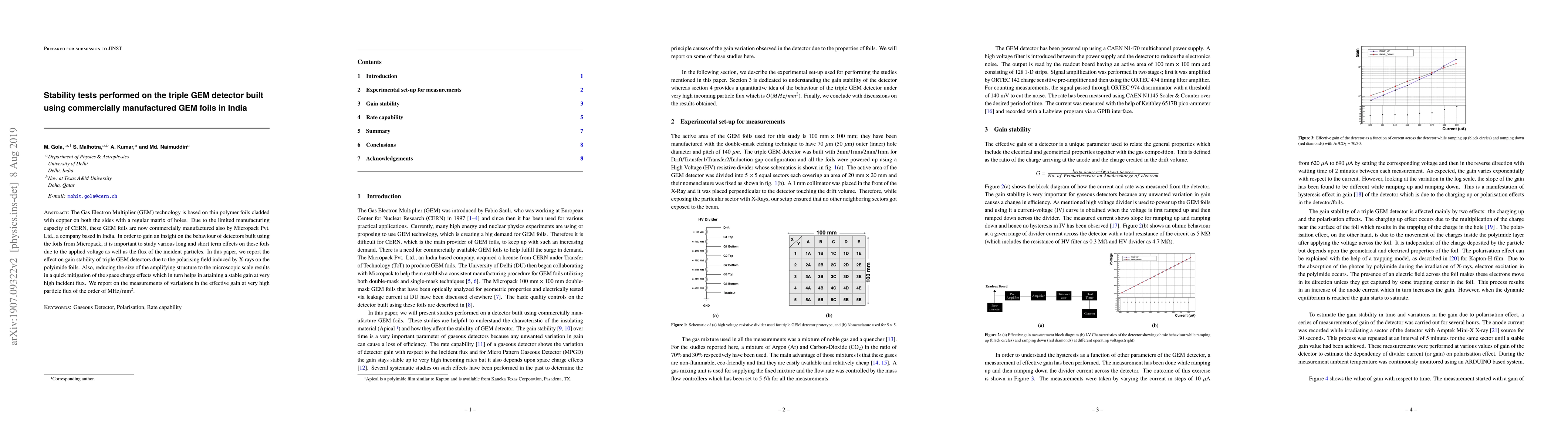 This paper investigates the stability of triple GEM detectors constructed with commercially manufactured GEM foils from Micropack Pvt. Ltd. in India, focusing on the gain stability under high X-ray flux and the mitigation of space charge effects due to the microscopic amplifying structure.