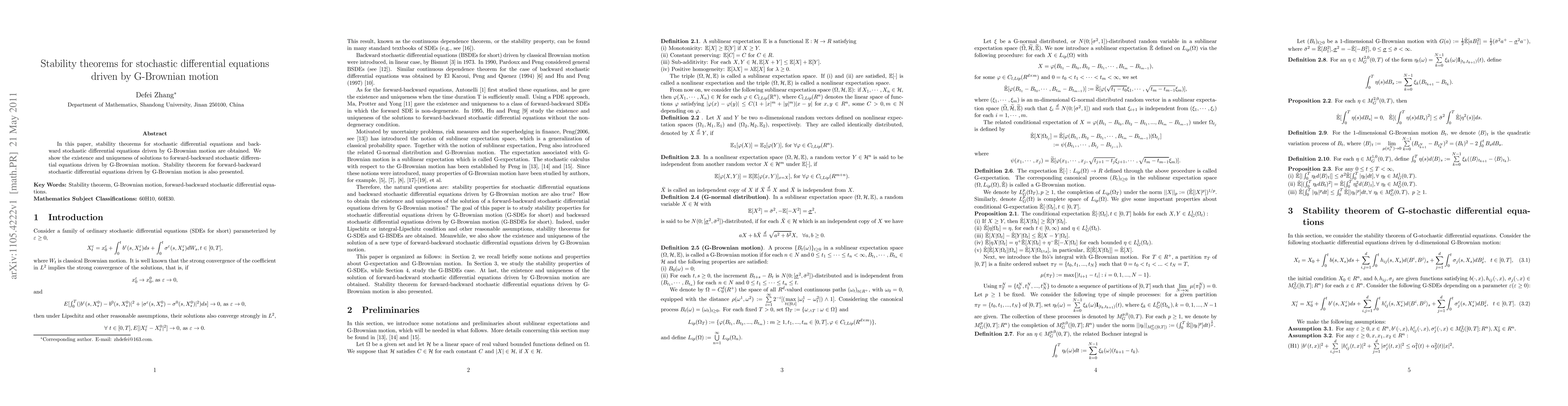 This paper establishes stability theorems for stochastic differential equations and backward stochastic differential equations driven by G-Brownian motion, demonstrating the existence, uniqueness, and stability of solutions to forward-backward stochastic differential equations under these stochastic processes.