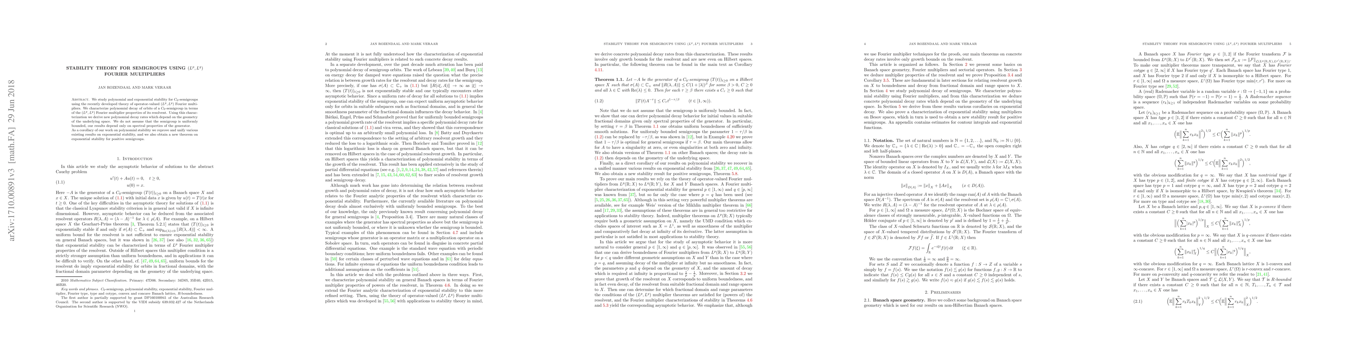 We study polynomial and exponential stability for $C_{0}$-semigroups using the recently developed theory of operator-valued $(L^{p},L^{q})$ Fourier multipliers. We characterize polynomial decay of orbits of a $C_{0}$-semigroup in terms of the $(L^{p},L^{q})$ Fourier multiplier properties of its resolvent. Using this characterization we derive new polynomial decay rates which depend on the geometry of the underlying space. We do not assume that the semigroup is uniformly bounded, our results depend only on spectral properties of the generator. As a corollary of our work on polynomial stability we reprove and unify various existing results on exponential stability, and we also obtain a new theorem on exponential stability for positive semigroups.
