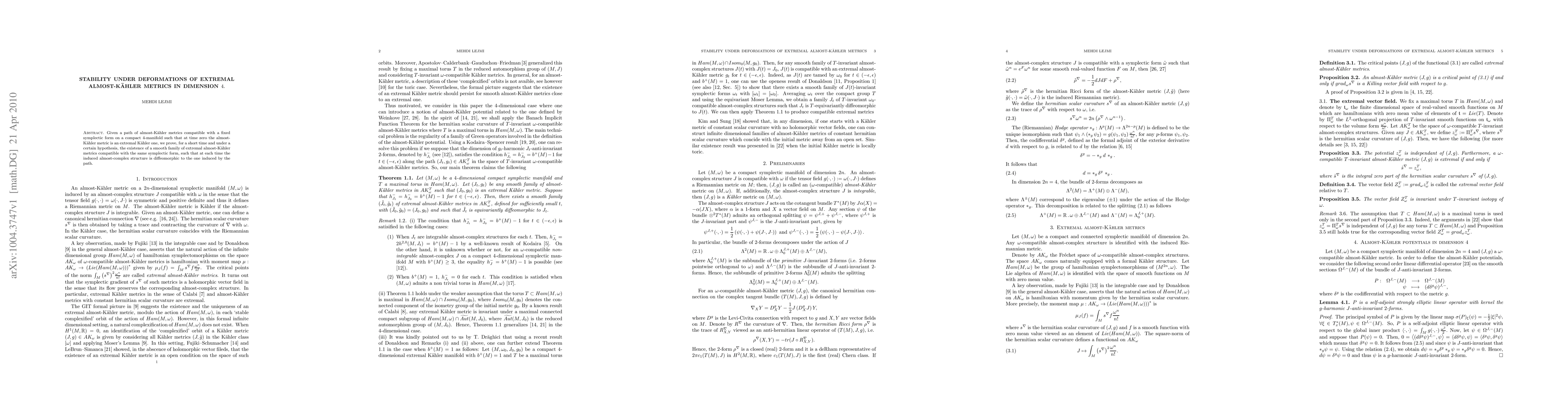 Summary: The paper proves the existence of a smooth family of extremal almost-Kähler metrics on a compact 4-manifold, compatible with a fixed symplectic form, starting from an extremal Kähler metric, under a short time condition and specific hypothesis. The induced almost-complex structures at each time remain diffeomorphic.