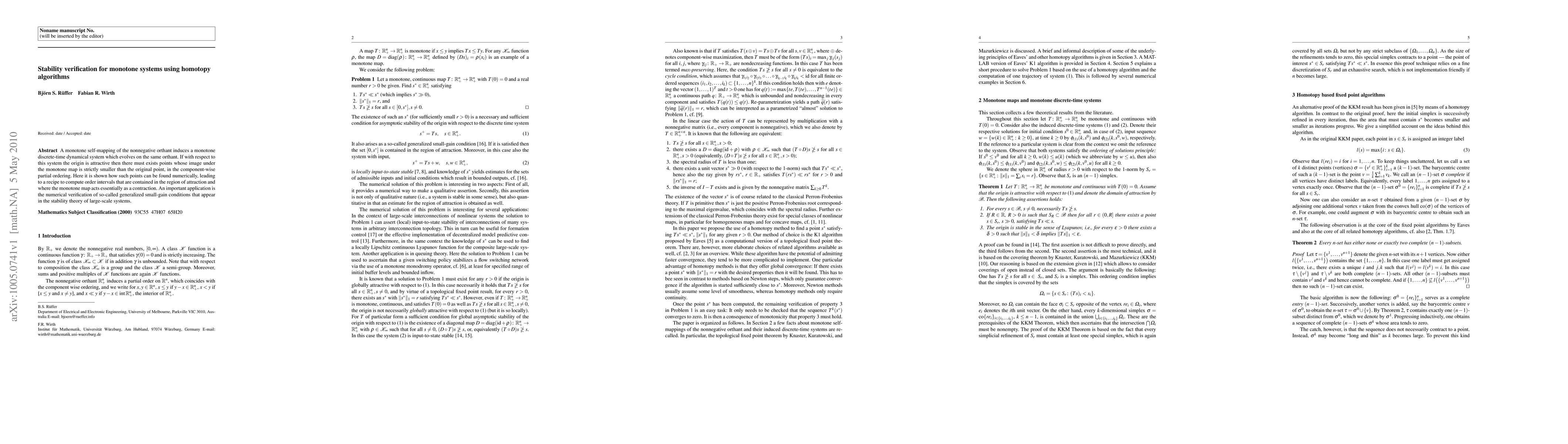 This paper presents a method for numerically verifying the stability of monotone systems using homotopy algorithms, focusing on finding points where the system acts as a contraction within the region of attraction, thus verifying generalized small-gain conditions in large-scale system stability theory.
