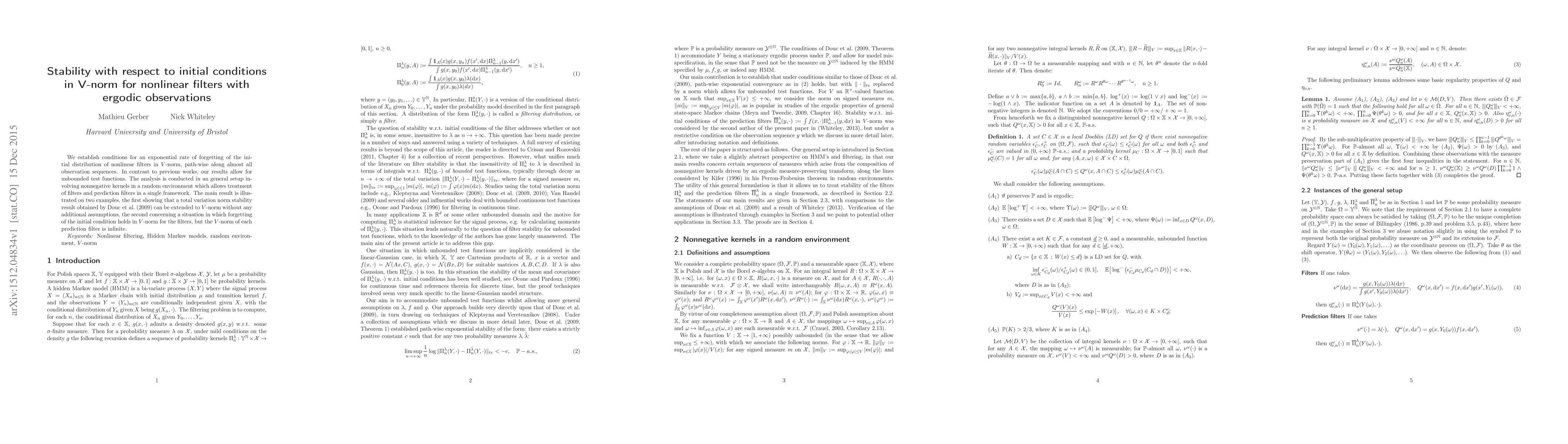This paper establishes conditions for an exponential rate of forgetting in nonlinear filters with ergodic observations in V-norm, allowing unbounded test functions. It extends previous results on stability to V-norm without additional assumptions.