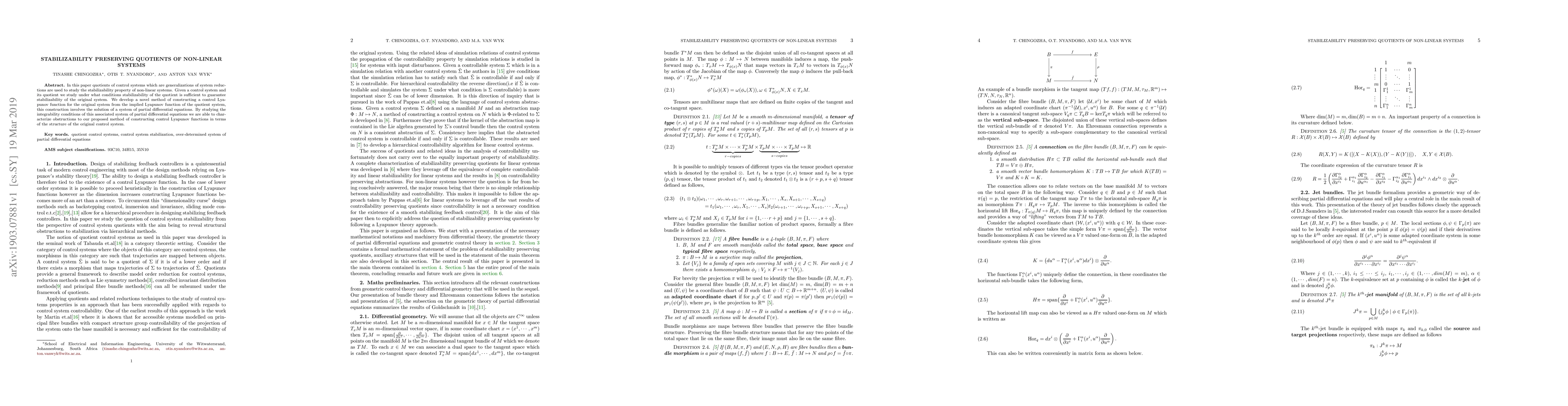 This paper explores how stabilizing a reduced model of a non-linear system can imply stabilization of the original system, and provides a method to construct a control Lyapunov function for the original system from the reduced model.