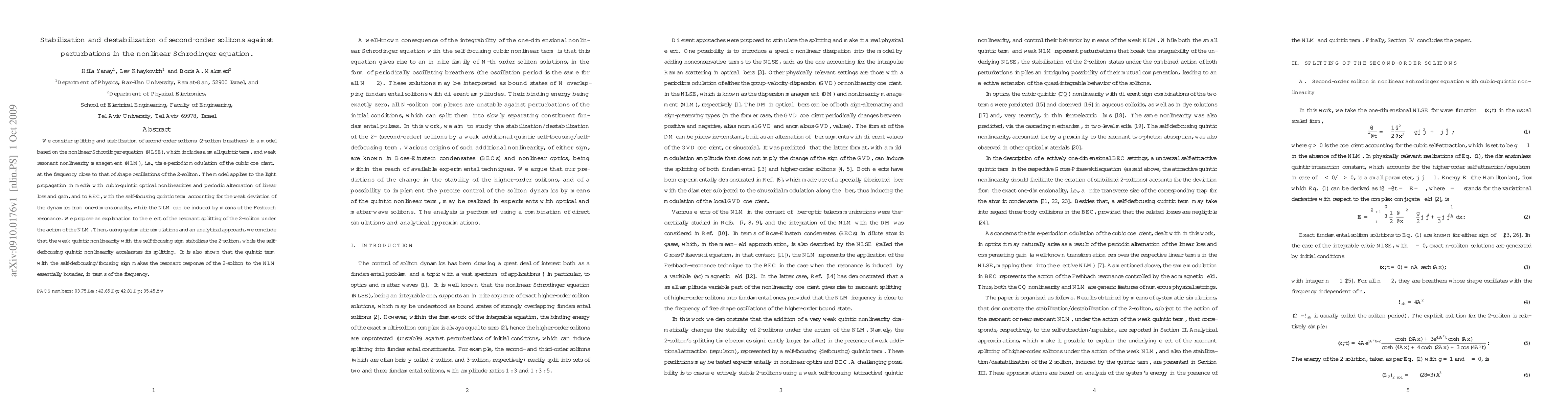 We consider splitting and stabilization of second-order solitons (2-soliton breathers) in a model based on the nonlinear Schr\"{o}dinger equation (NLSE), which includes a small quintic term, and weak resonant nonlinearity management (NLM), i.e., time-periodic modulation of the cubic coefficient, at the frequency close to that of shape oscillations of the 2-soliton. The model applies to the light propagation in media with cubic-quintic optical nonlinearities and periodic alternation of linear loss and gain, and to BEC, with the self-focusing quintic term accounting for the weak deviation of the dynamics from one-dimensionality, while the NLM can be induced by means of the Feshbach resonance. We propose an explanation to the effect of the resonant splitting of the 2-soliton under the action of the NLM. Then, using systematic simulations and an analytical approach, we conclude that the weak quintic nonlinearity with the self-focusing sign stabilizes the 2-soliton, while the self-defocusing quintic nonlinearity accelerates its splitting. It is also shown that the quintic term with the self-defocusing/focusing sign makes the resonant response of the 2-soliton to the NLM essentially broader, in terms of the frequency.
