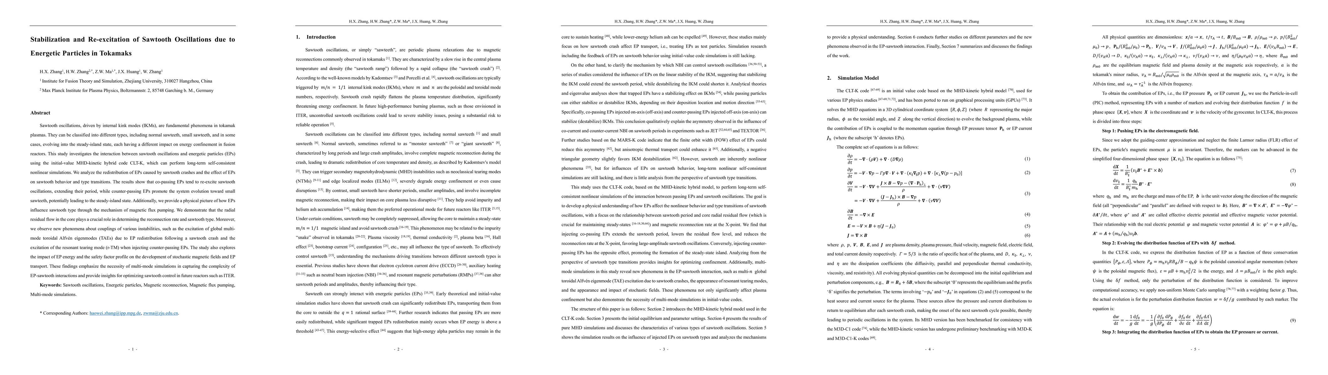 This study uses CLT-K code to simulate interactions between sawtooth oscillations and energetic particles in tokamaks, revealing that co-passing EPs re-excite sawtooths while counter-passing EPs lead to small sawteeth or steady-island state. The research also identifies new phenomena like global TAEs and r-TM mode excitation, highlighting the importance of multi-mode simulations for optimizing sawtooth control in future fusion reactors like ITER.