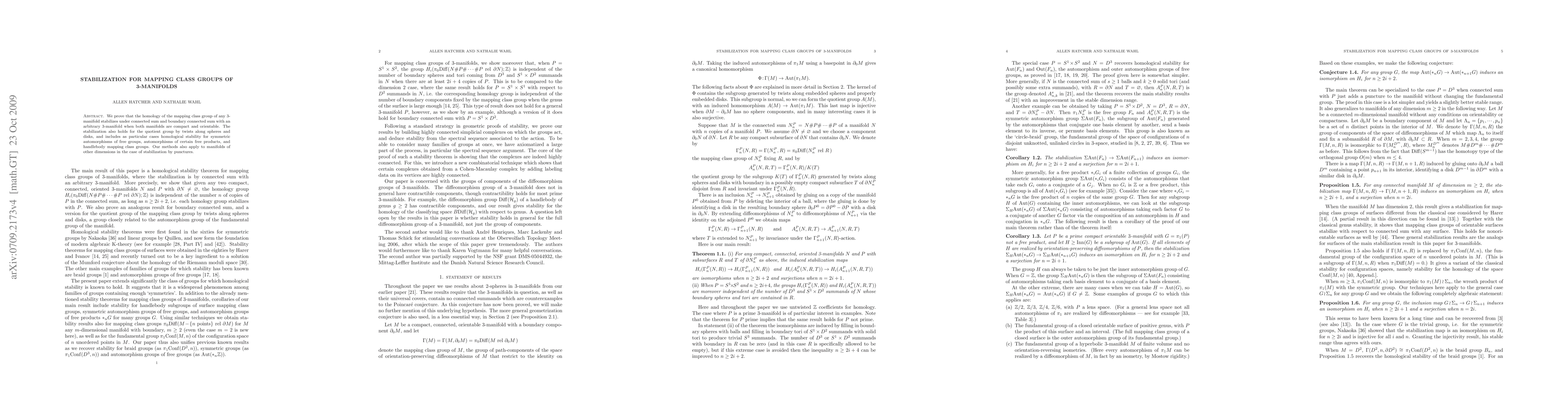 This paper proves homological stability for the mapping class groups of compact, orientable 3-manifolds under connected sum and boundary connected sum operations, extending the results to quotient groups by twists along spheres and disks. The methods are applicable to other dimensions for stabilization by punctures.