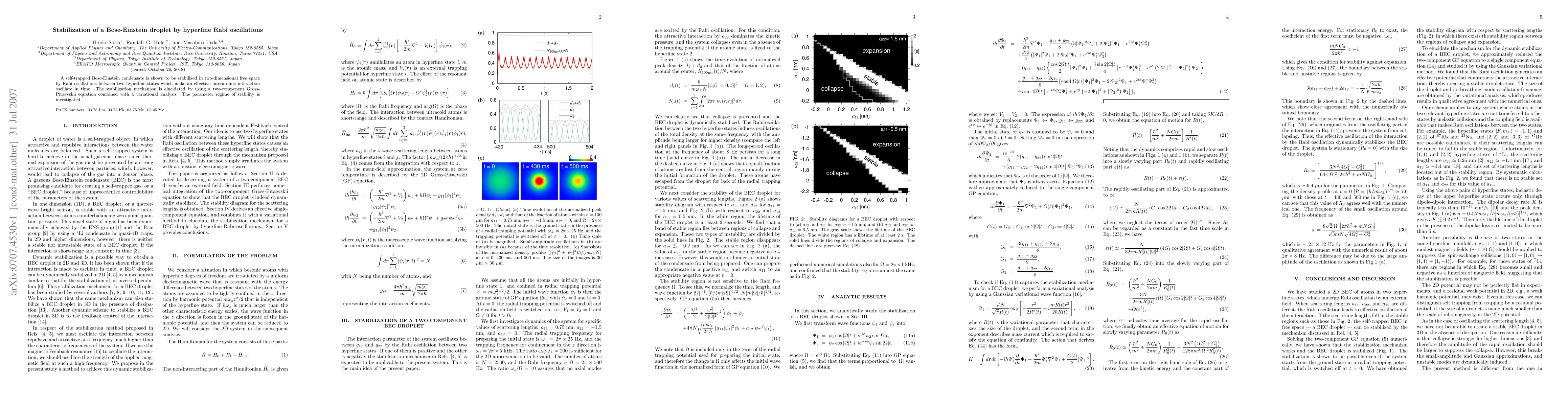 This paper demonstrates the stabilization of a two-dimensional Bose-Einstein condensate using hyperfine Rabi oscillations, which modulate the effective interatomic interaction. The stabilization mechanism is analyzed using a two-component Gross-Pitaevskii equation and variational methods, revealing the parameter regime where the condensate remains stable.