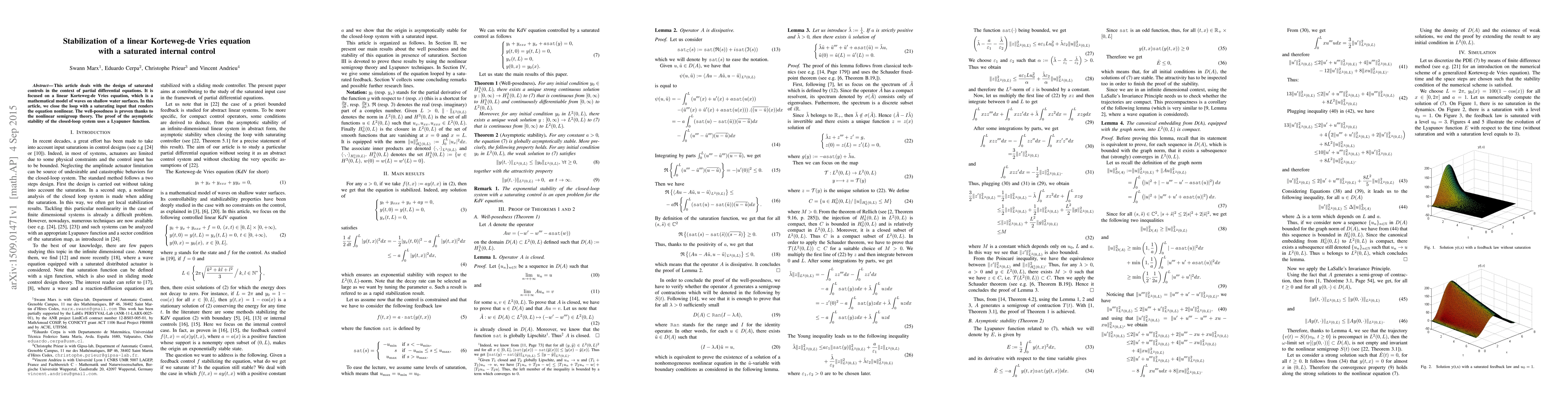 This paper proves that a linear Korteweg-de Vries equation can be stabilized with a saturated control, demonstrating the asymptotic stability of the closed-loop system using Lyapunov function theory.