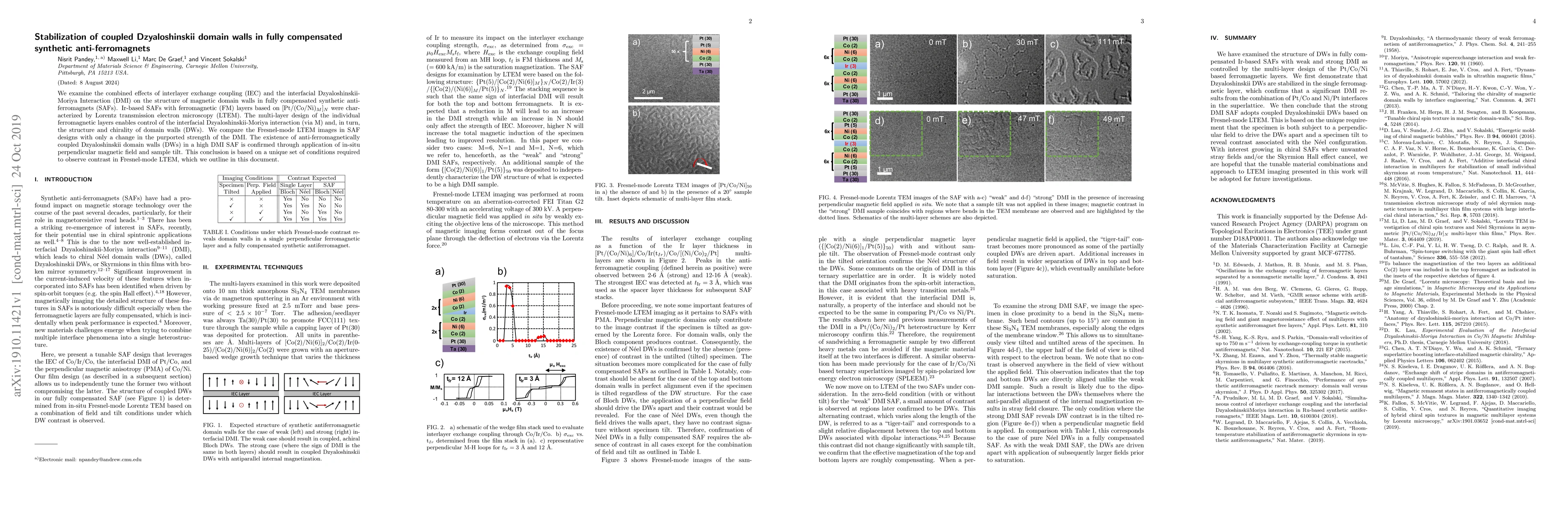 Researchers study how different interactions affect magnetic domain walls in synthetic anti-ferromagnets, finding that high DMI strength can stabilize specific types of domain walls.