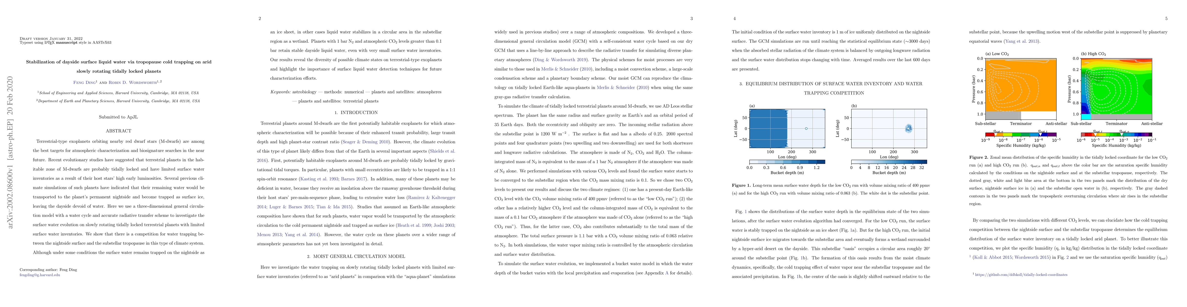 This study uses a 3D general circulation model to explore how limited surface water on tidally locked terrestrial exoplanets around M-dwarfs can stabilize as liquid on the dayside via tropopause cold trapping, revealing diverse climate states and the potential for stable dayside wetlands.