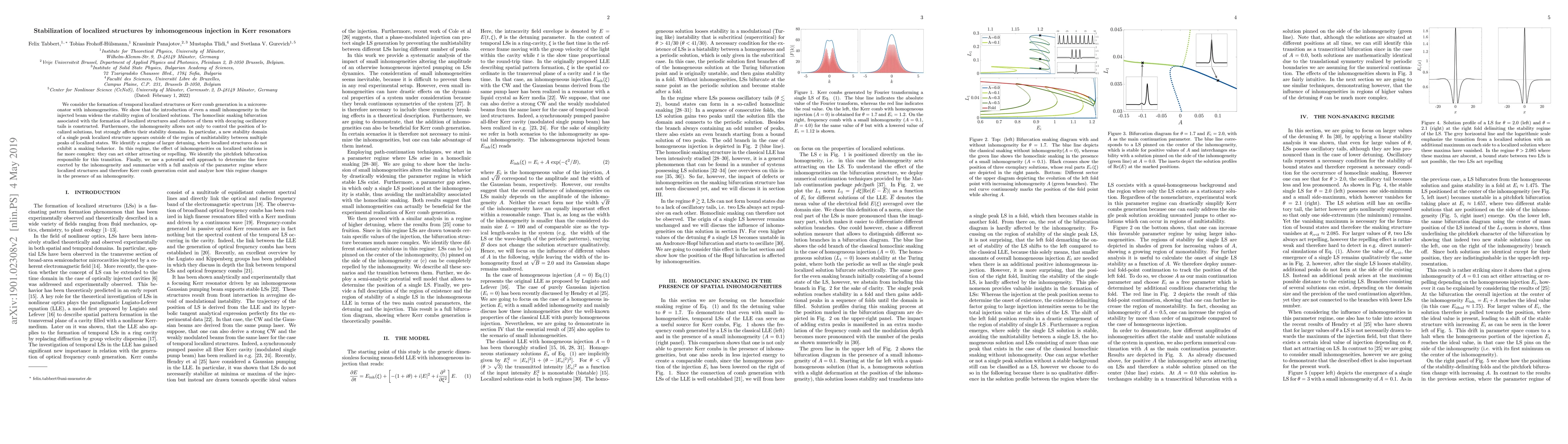 This paper investigates how inhomogeneous injection in Kerr resonators can stabilize temporal localized structures, known as Kerr combs, by widening the stability region. It reveals that inhomogeneity not only controls the position but also affects the stability domains of localized solutions, introducing new stability domains for single peak structures.