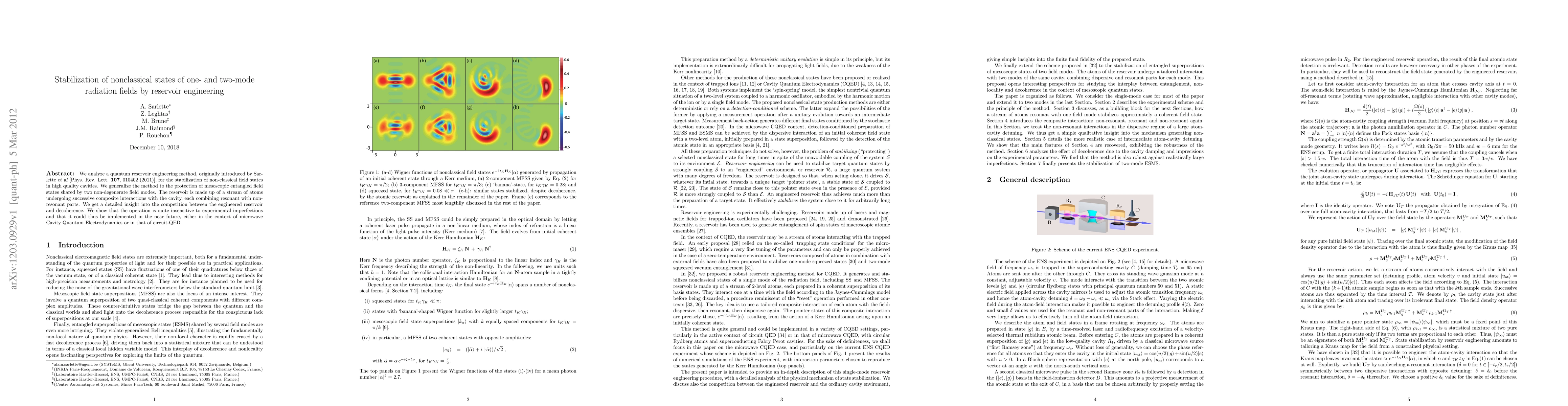 This paper explores a quantum reservoir engineering technique to stabilize non-classical states in high-quality cavities, extending it to protect entangled states across two modes. The method is robust against experimental imperfections, suggesting its potential implementation in microwave or circuit-QED systems.