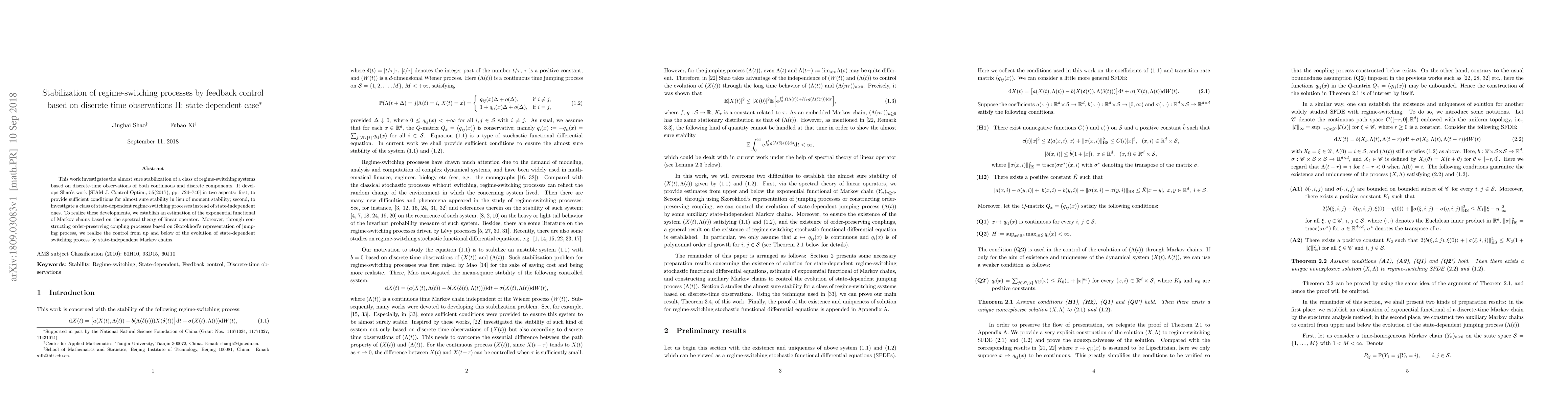 This paper explores the almost sure stabilization of regime-switching systems using discrete-time observations, focusing on state-dependent processes. It extends Shao's prior work by providing sufficient conditions for almost sure stability and analyzing state-dependent regimes instead of state-independent ones.