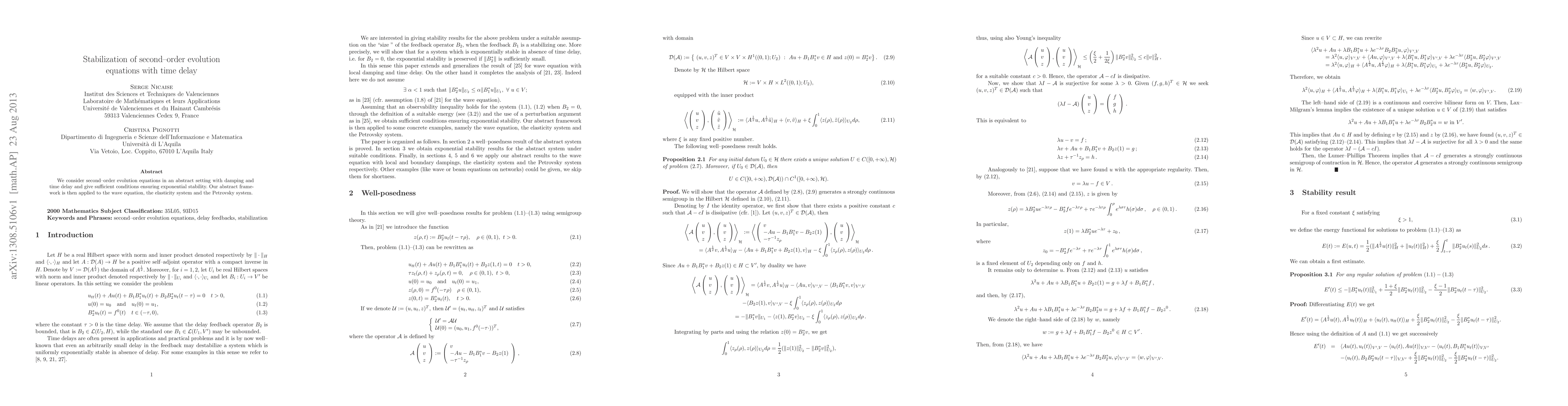 This paper provides sufficient conditions for exponential stability in second-order evolution equations with damping and time delay, and applies this abstract framework to the wave equation, elasticity system, and Petrovsky system.