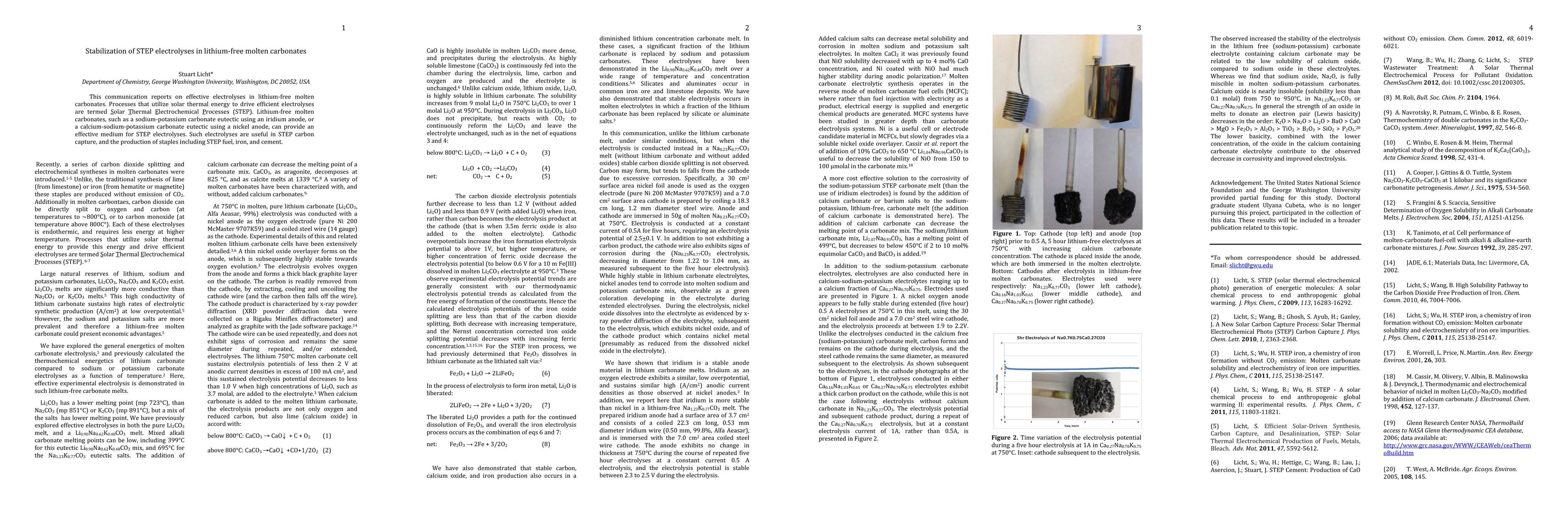 This paper discusses the stabilization of Solar Thermal Electrochemical Processes (STEP) in lithium-free molten carbonates, utilizing sodium-potassium or calcium-sodium-potassium carbonates with iridium or nickel anodes for efficient electrolysis, which is crucial for carbon capture and production of fuel, iron, and cement.