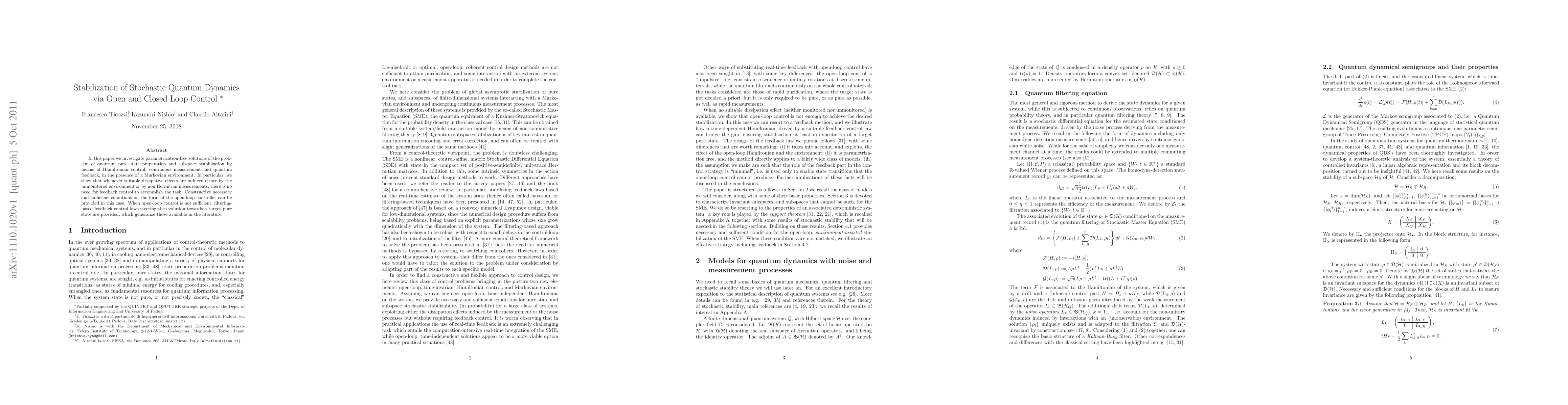 This paper explores quantum state preparation and stabilization without feedback control when dissipative effects are present, providing conditions for open-loop Hamiltonian control. When open-loop control is insufficient, it introduces filtering-based feedback control laws to guide the system to a desired state.