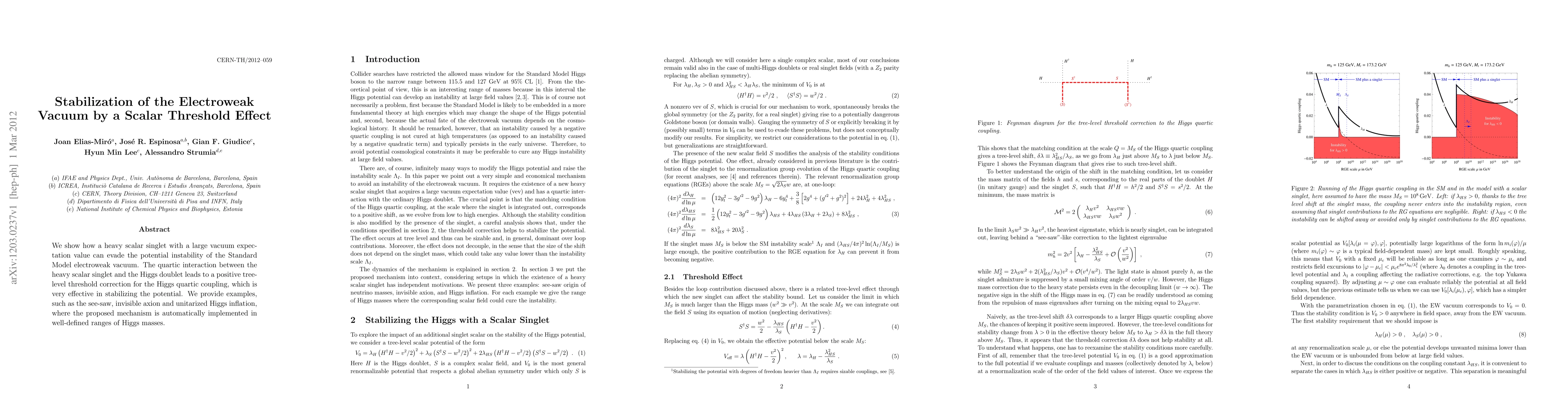 We show how a heavy scalar singlet with a large vacuum expectation value can evade the potential instability of the Standard Model electroweak vacuum. The quartic interaction between the heavy scalar singlet and the Higgs doublet leads to a positive tree-level threshold correction for the Higgs quartic coupling, which is very effective in stabilizing the potential. We provide examples, such as the see-saw, invisible axion and unitarized Higgs inflation, where the proposed mechanism is automatically implemented in well-defined ranges of Higgs masses.