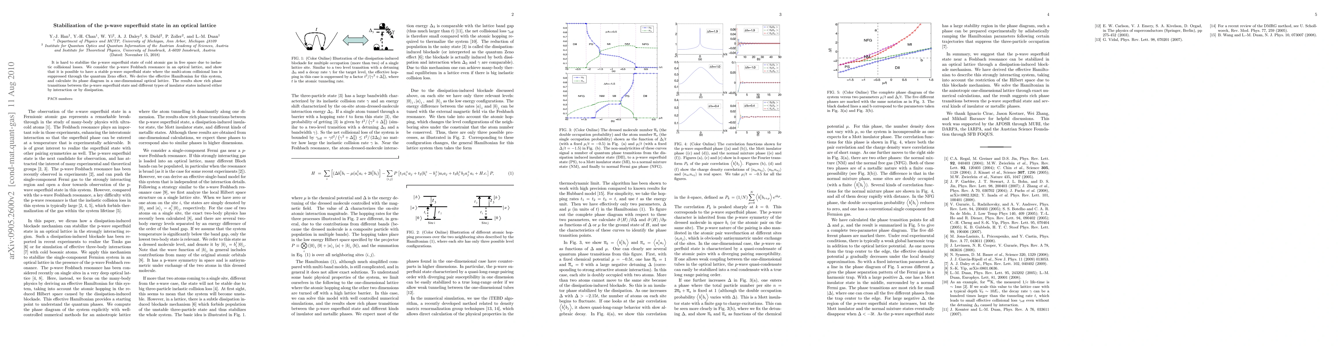 This paper demonstrates the stabilization of a p-wave superfluid state in an optical lattice, overcoming inelastic collisional losses through p-wave Feshbach resonance and the quantum Zeno effect. The study derives an effective Hamiltonian and maps out phase transitions between the p-wave superfluid and various insulating states in a one-dimensional optical lattice.