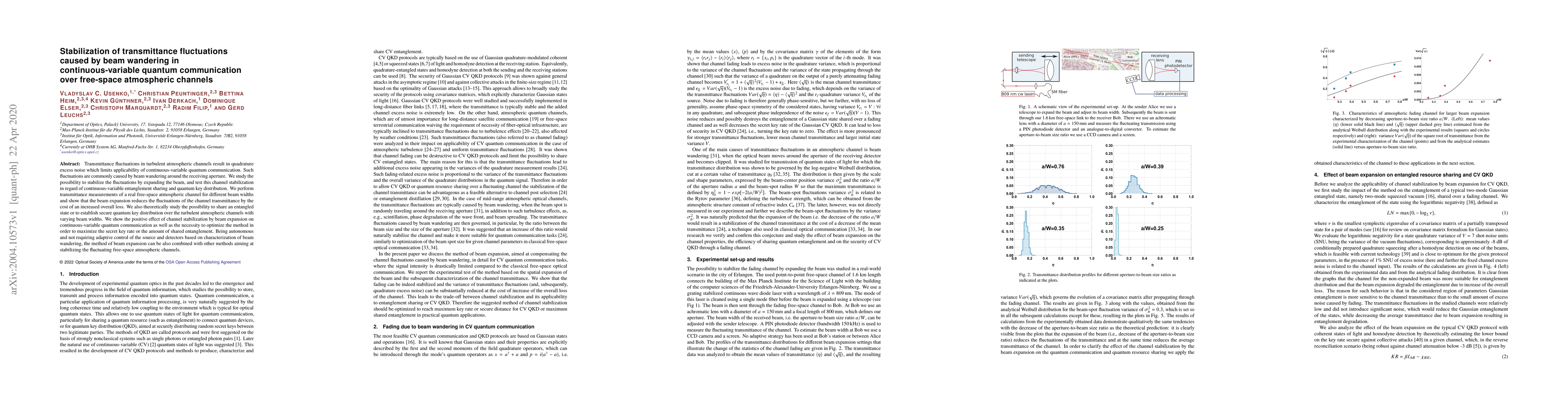This paper investigates the stabilization of transmittance fluctuations in continuous-variable quantum communication over turbulent atmospheric channels by expanding the beam, demonstrating a reduction in fluctuations but increased overall loss. The study also explores the impact on entanglement sharing and quantum key distribution, highlighting the need for optimization to maximize performance.