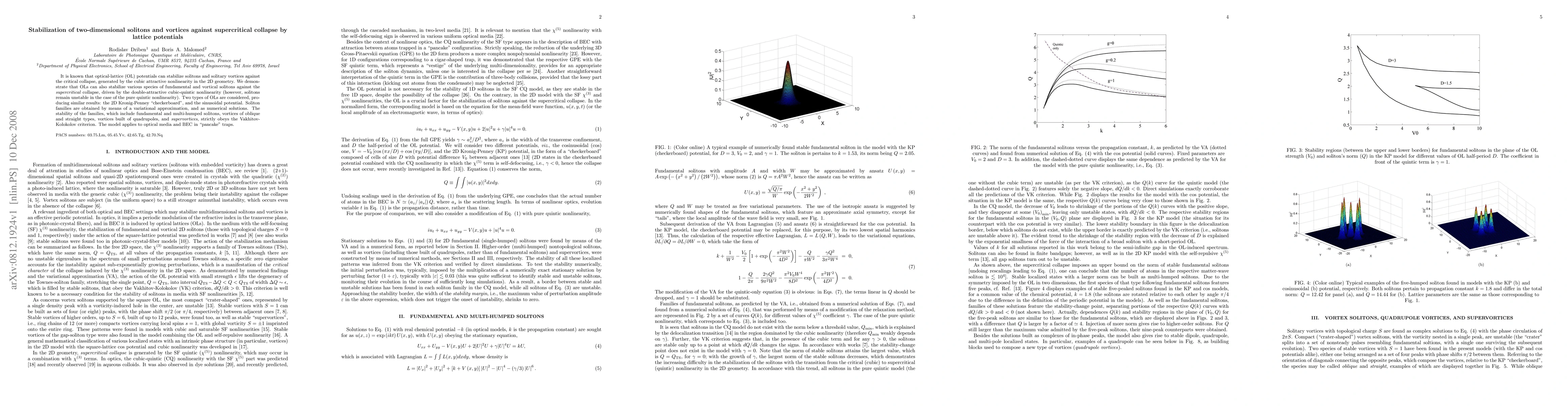 This paper demonstrates that optical-lattice potentials can stabilize various types of 2D solitons and vortices against supercritical collapse driven by double-attractive cubic-quintic nonlinearity, while remaining unstable under pure quintic nonlinearity. The study uses both variational approximation and numerical solutions to confirm the stability of these soliton families under two types of optical lattices.