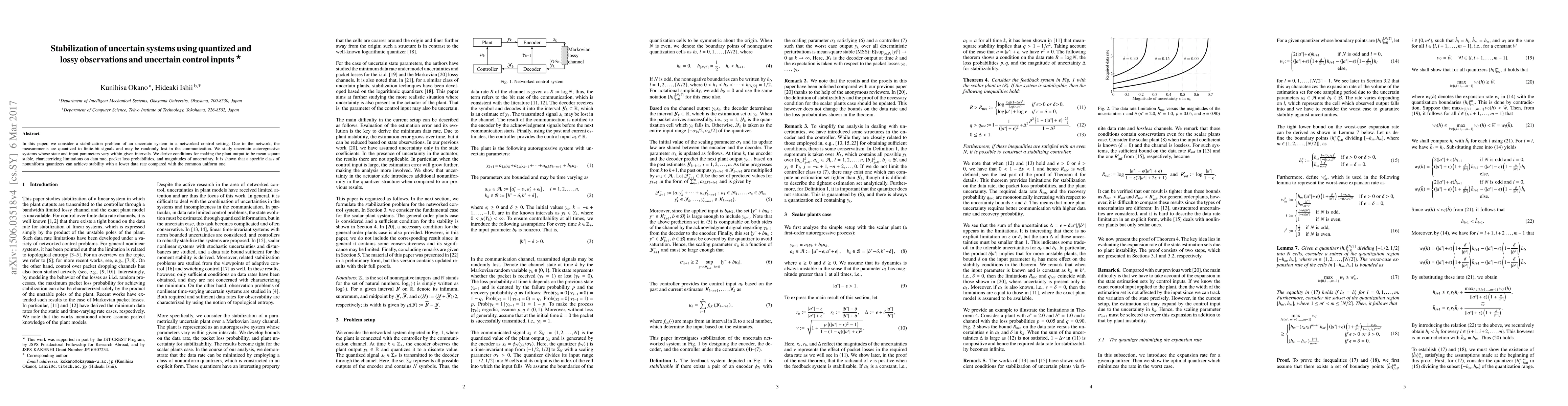 This paper addresses the stabilization of uncertain systems under networked control, where measurements are quantized and subject to random loss. It derives conditions for mean square stability, highlighting that nonuniform quantizers can achieve stability with lower data rates compared to uniform quantizers.