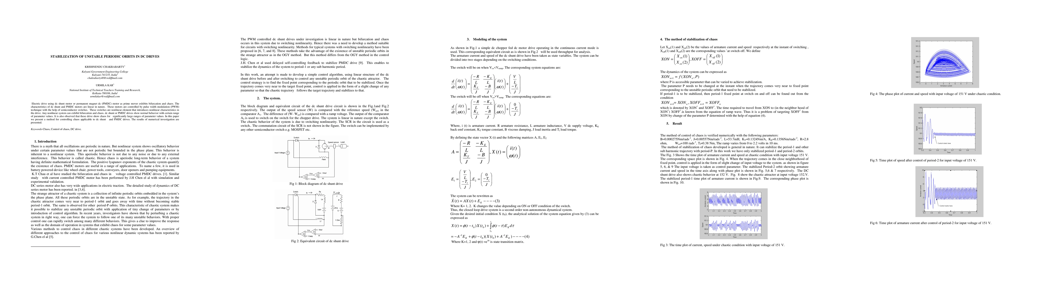 This paper proposes a method to control chaos in dc shunt and permanent magnet dc drives, which exhibit bifurcation and chaos due to the nonlinear characteristics introduced by pulse width modulation. The study presents numerical results demonstrating the stabilization of unstable periodic orbits.