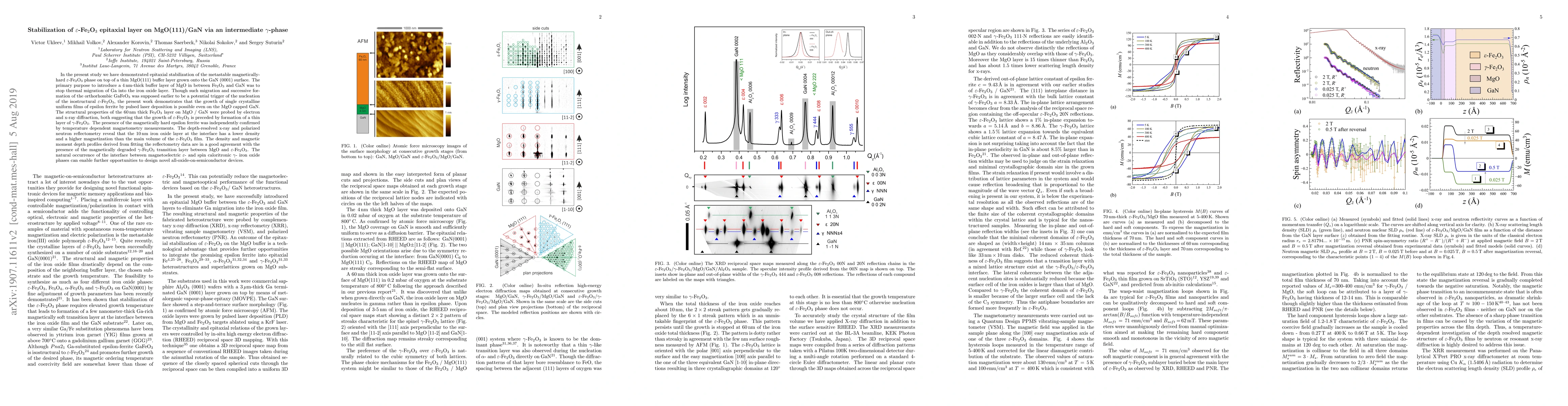The research utilized pulsed laser deposition (PLD) to grow a 60 nm $\varepsilon$-Fe$_2$O$_3$ layer on a MgO(111) buffer layer grown on GaN(0001). Structural properties were examined using electron and x-ray diffraction, while temperature-dependent magnetometry, x-ray reflectometry (XRR), and polarized neutron reflectometry (PNR) were employed to analyze magnetic properties.