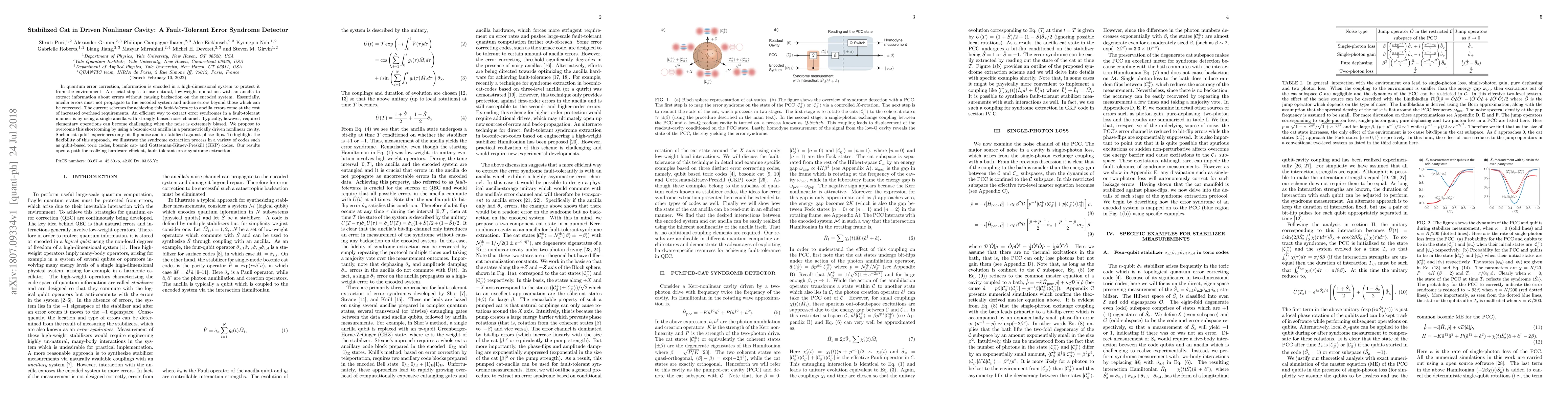 This paper proposes a method to efficiently detect error syndromes in quantum error correction using a bosonic-cat ancilla in a driven nonlinear cavity, which is stable against phase-flips and only experiences bit-flip noise. This approach aims to reduce overhead requirements and improve fault tolerance without propagating ancilla errors to the encoded system.