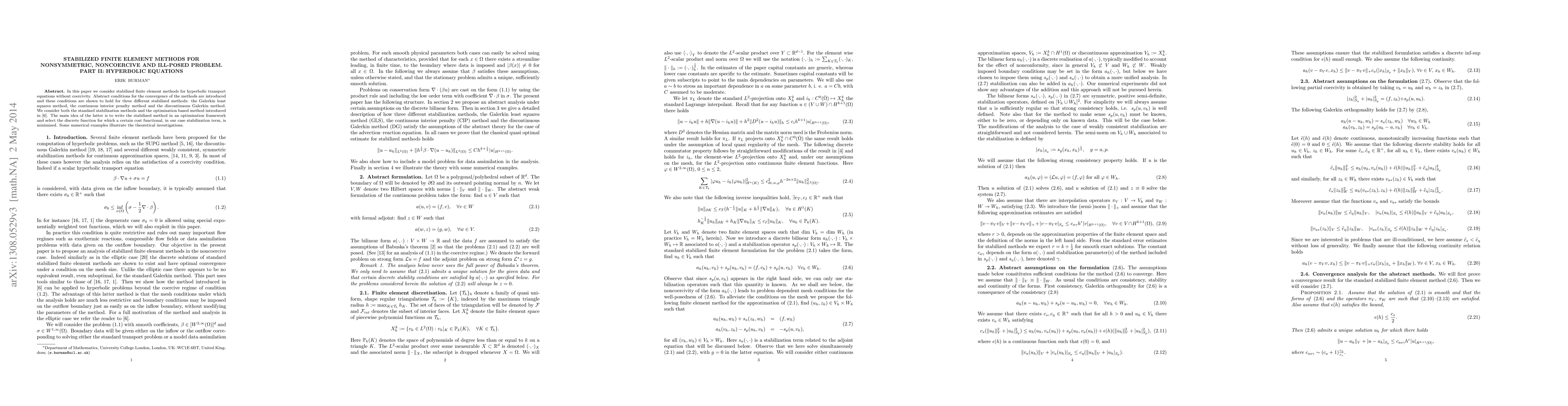 In this paper we consider stabilised finite element methods for hyperbolic transport equations without coercivity. Abstract conditions for the convergence of the methods are introduced and these conditions are shown to hold for three different stabilised methods: the Galerkin least squares method, the continuous interior penalty method and the discontinuous Galerkin method. We consider both the standard stabilisation methods and the optimisation based method introduced in \cite{part1}. The main idea of the latter is to write the stabilised method in an optimisation framework and select the discrete function for which a certain cost functional, in our case stabilisation term, is minimised. Some numerical examples illustrate the theoretical investigations.