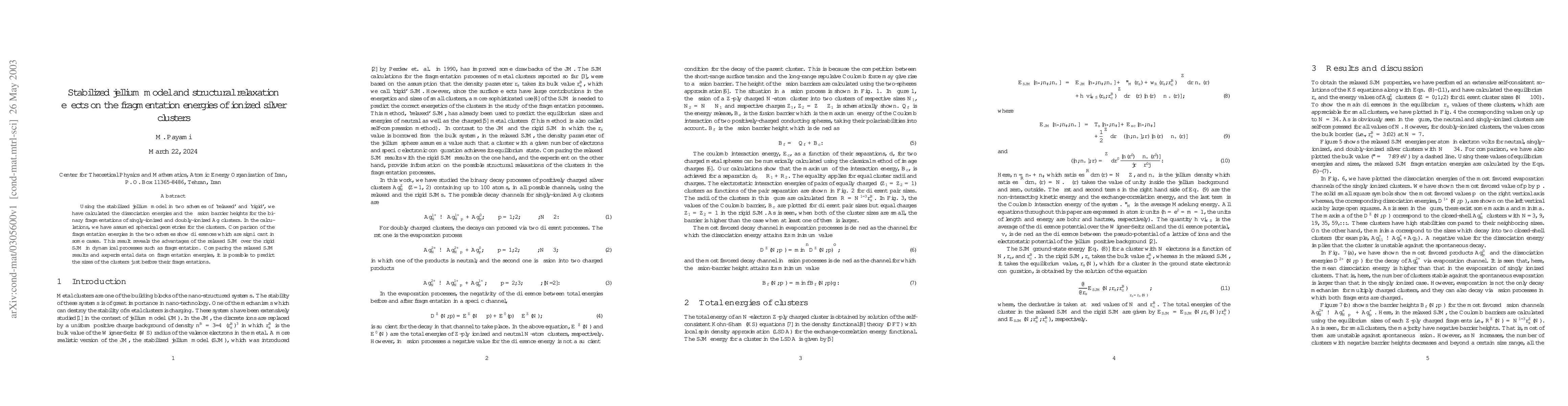 Using the stabilized jellium model in two schemes of `relaxed' and `rigid', we have calculated the dissociation energies and the fission barrier heights for the binary fragmentations of singly-ionized and doubly-ionized Ag clusters. In the calculations, we have assumed spherical geometries for the clusters. Comparison of the fragmentation energies in the two schemes show differences which are significant in some cases. This result reveals the advantages of the relaxed SJM over the rigid SJM in dynamical processes such as fragmentation. Comparing the relaxed SJM results and axperimental data on fragmentation energies, it is possible to predict the sizes of the clusters just before their fragmentations.