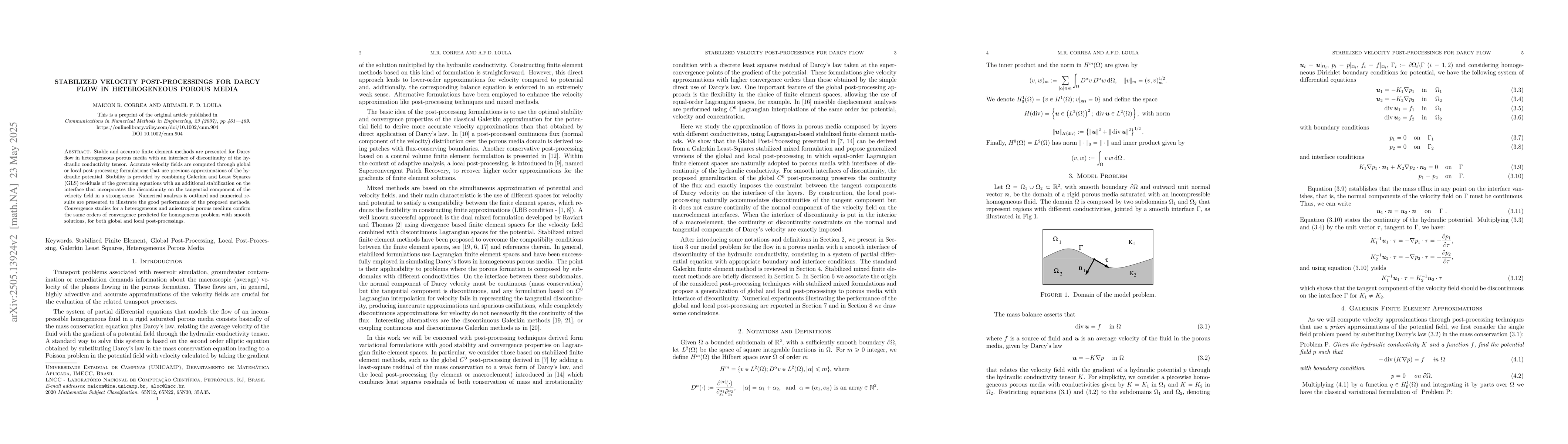 The paper introduces a novel stabilized post-processing technique for Darcy flow in heterogeneous porous media, ensuring stability through combined GLS residuals and interface-specific stabilization.