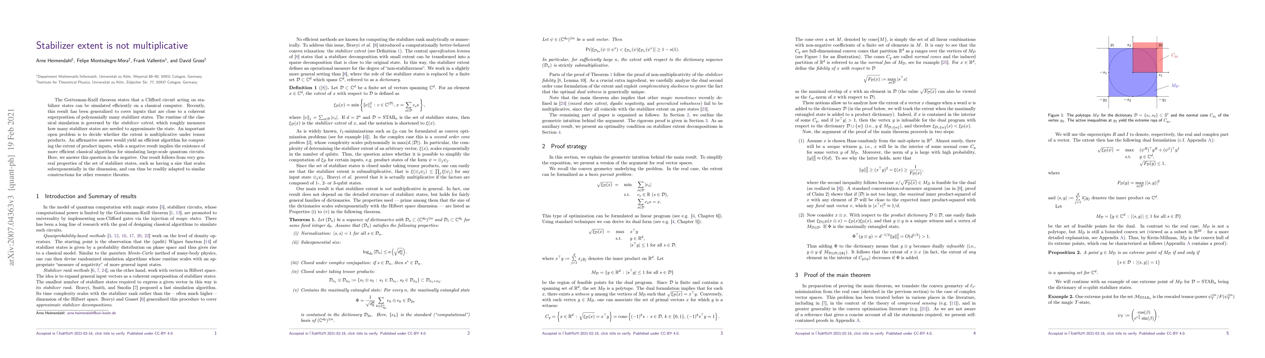 The paper proves that the stabilizer extent, which measures the approximation of quantum states by stabilizer states, is not multiplicative under tensor products. This result indicates the potential existence of more efficient classical algorithms for simulating large-scale quantum circuits.