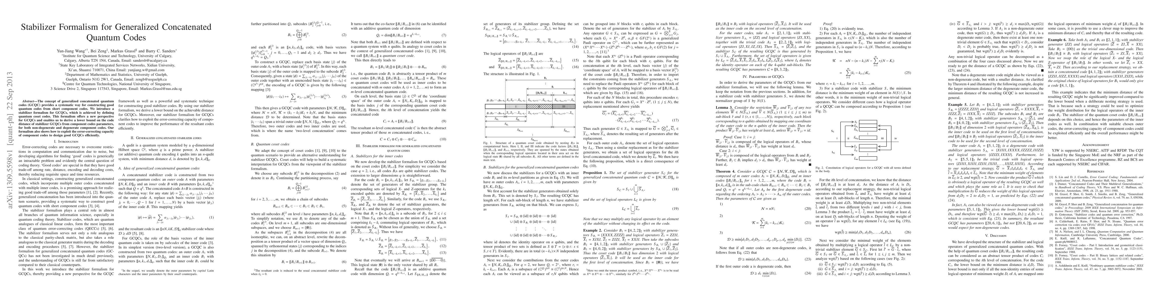 The paper introduces a stabilizer formalism for generalized concatenated quantum codes (GCQC), defining quantum coset codes to derive a lower bound on code distance. This approach leverages component codes' error-correcting capacity to efficiently design effective GCQCs.