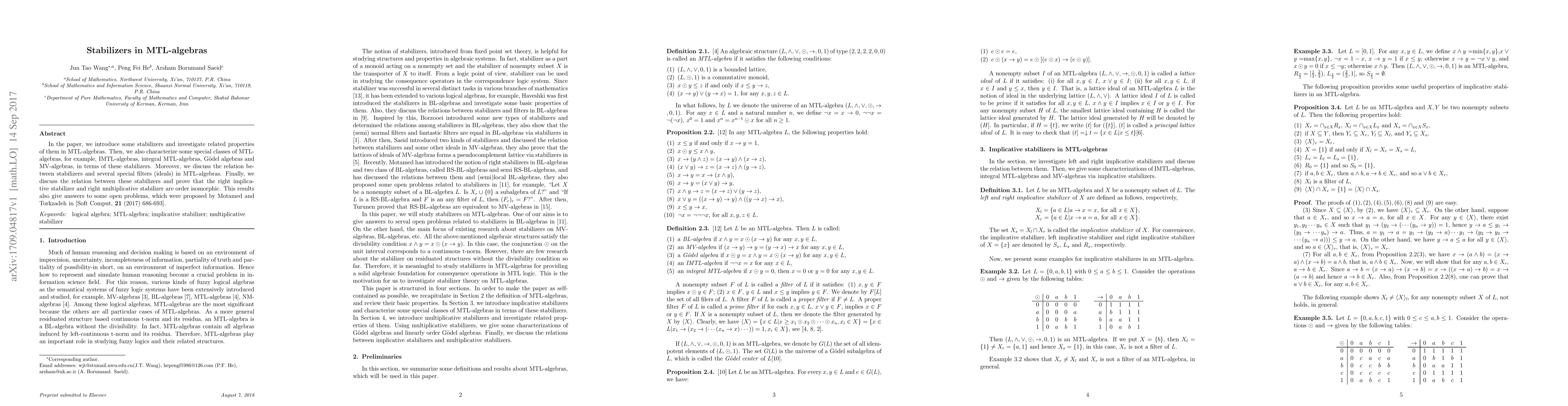 This paper introduces stabilizers in MTL-algebras and investigates their properties, characterizing special classes like IMTL-algebras and MV-algebras via these stabilizers. It also explores the relationship between stabilizers and specific filters in MTL-algebras, concluding with an order isomorphism between right implicative and right multiplicative stabilizers, resolving some open problems proposed by Motamed and Torkzadeh.
