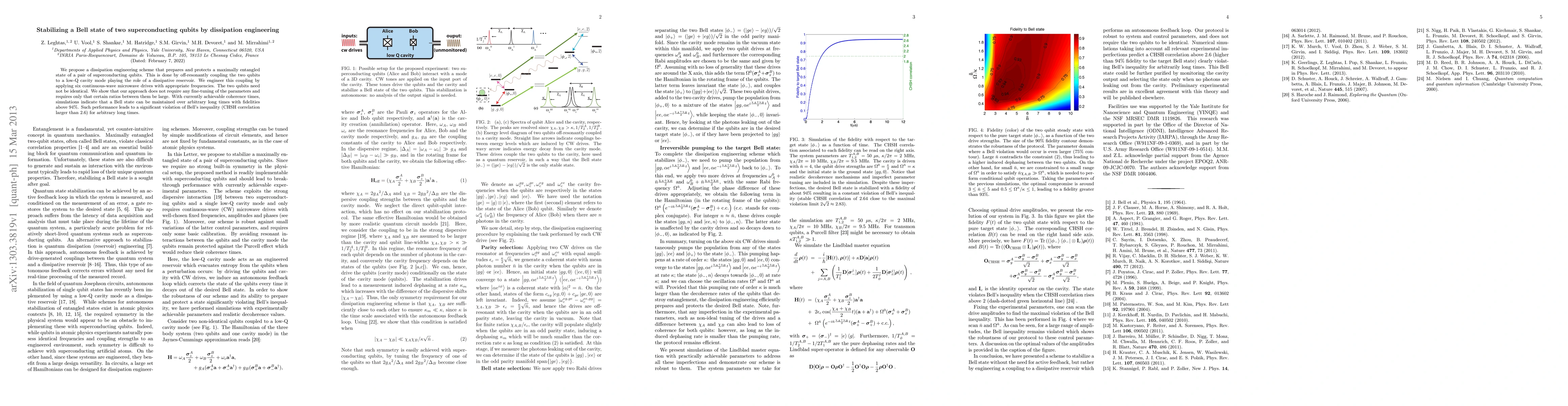 Researchers propose a method to stabilize a Bell state of two superconducting qubits using dissipation engineering with minimal parameter tuning, resulting in high fidelity (>94%) and long-term entanglement maintenance.