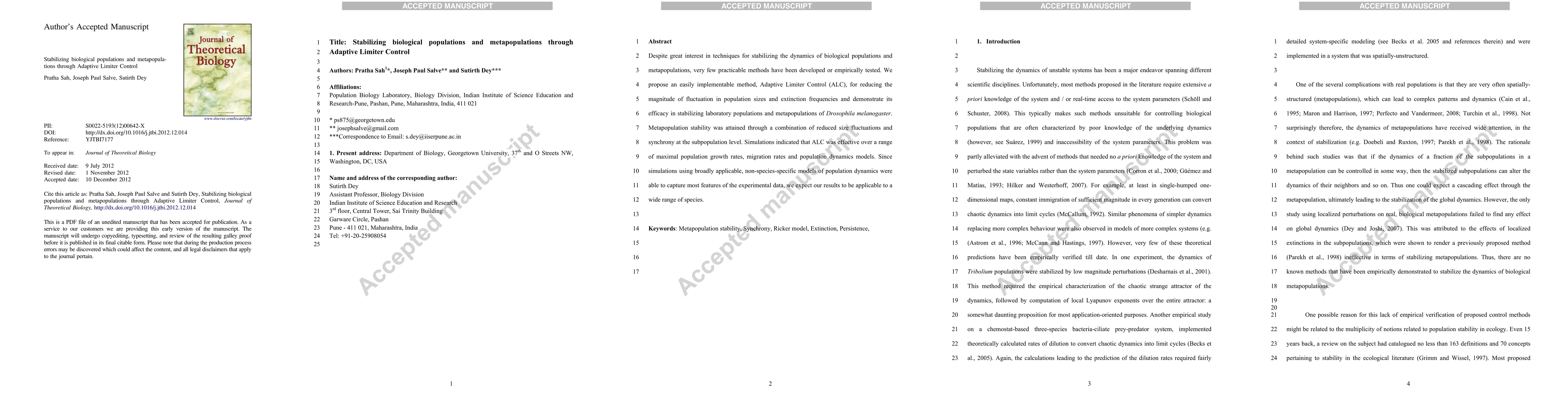 Researchers developed Adaptive Limiter Control to stabilize biological populations and metapopulations, reducing extinction frequencies and population fluctuations. The method was shown to be effective in lab experiments with Drosophila melanogaster and applicable to a wide range of species.