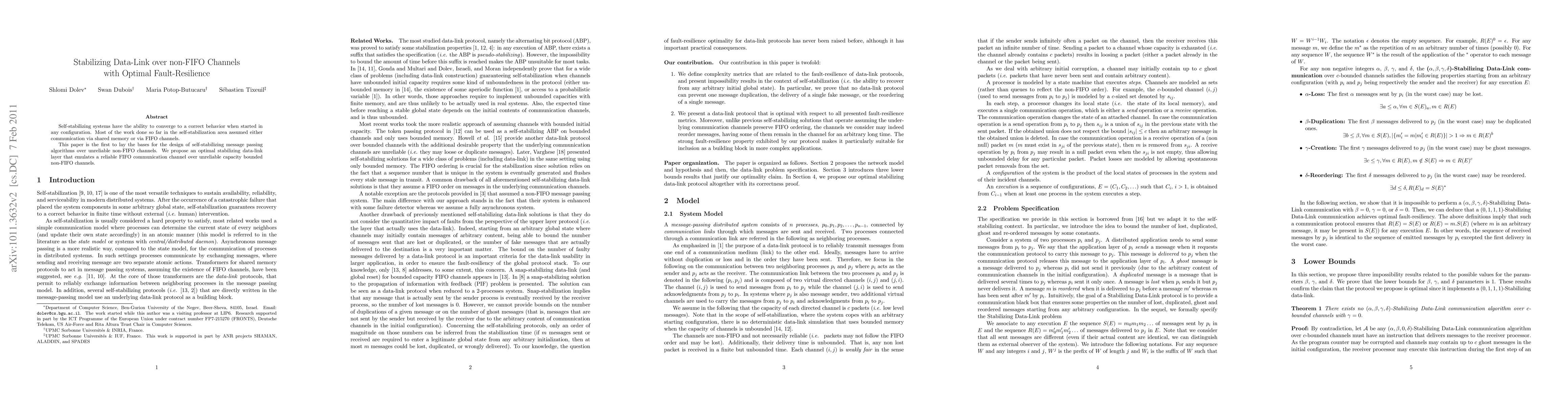 This paper introduces the first self-stabilizing message passing algorithms for non-FIFO channels, proposing an optimal stabilizing data-link layer that emulates reliable FIFO communication over unreliable, capacity-bounded channels. The approach aims to achieve fault-resilience by ensuring message delivery even in the presence of faults.