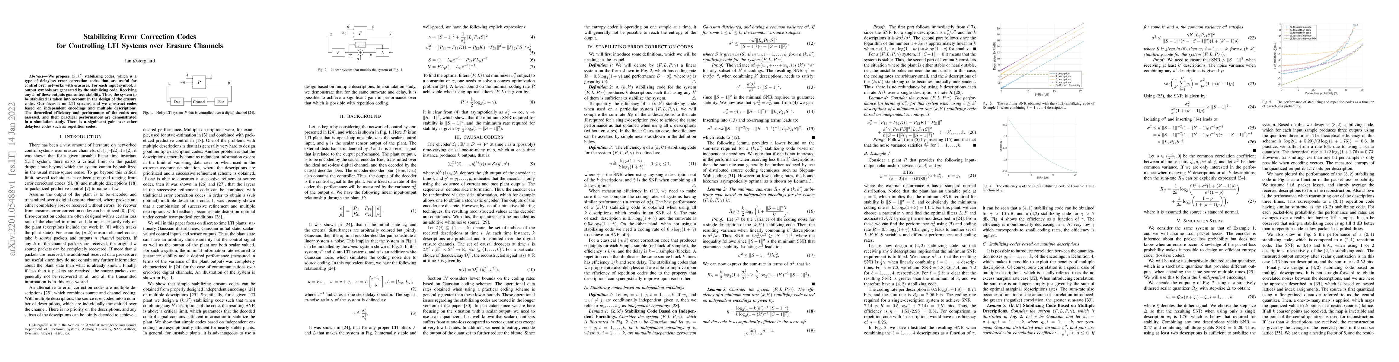This paper proposes (k,k') stabilizing codes for controlling LTI systems over erasure channels, generating k output symbols per input to ensure stability with any k' received outputs. The codes show significant performance gains over traditional repetition codes and are demonstrated through simulation.