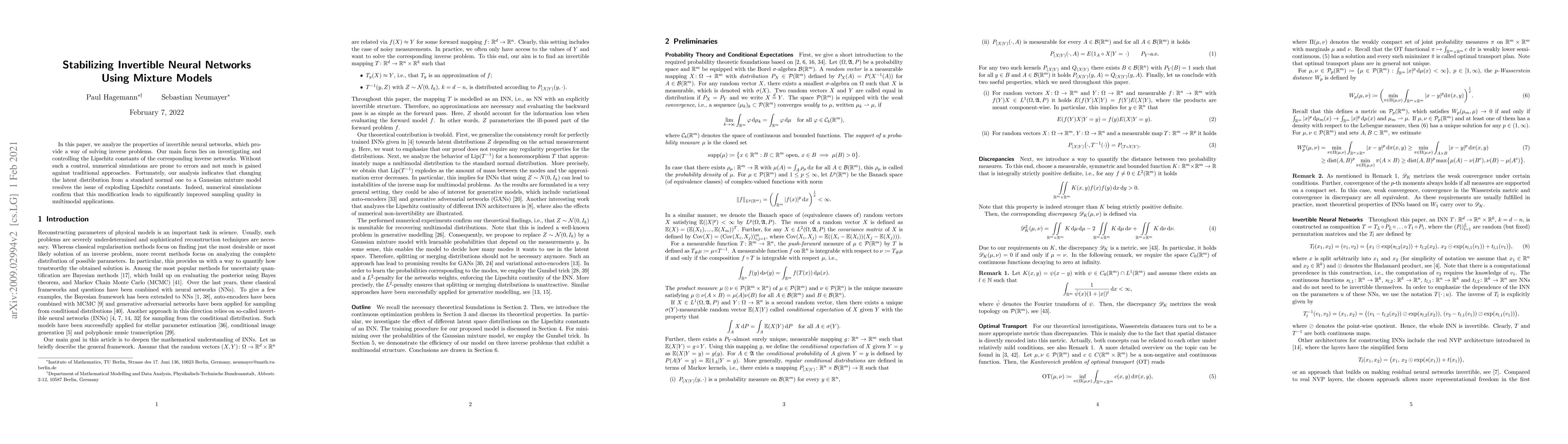 This paper investigates stabilizing invertible neural networks by using Gaussian mixture models instead of standard normal distributions, which effectively control the Lipschitz constants and significantly improve sampling quality in multimodal applications. The modification resolves issues with exploding Lipschitz constants, enhancing the networks' performance over traditional approaches.