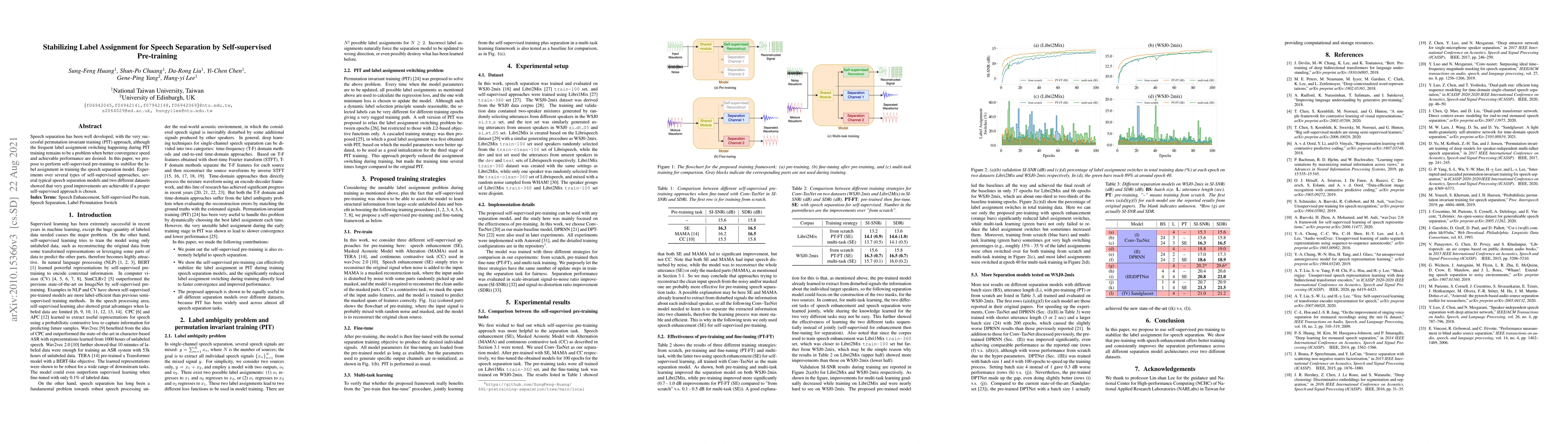This paper proposes self-supervised pre-training to stabilize label assignment during the training of speech separation models using permutation invariant training (PIT). Experiments demonstrate significant improvements in convergence speed and performance when an appropriate self-supervised method is employed.
